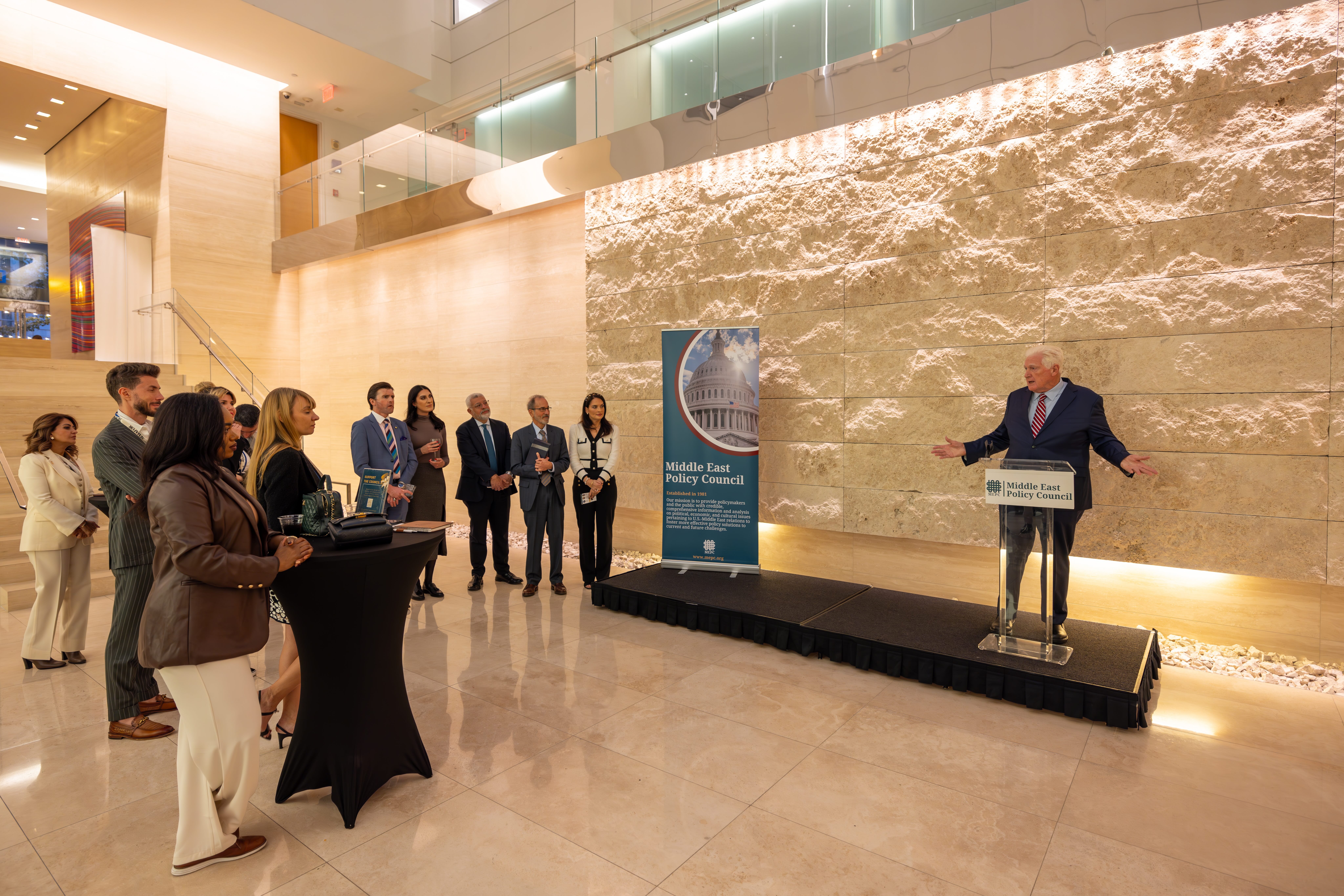 The reception connected political, diplomatic, and private industry leaders in U.S.-MENA relations, advancing their abilities to navigate, network, and influence in Washington. Attendees included foreign diplomats, U.S. executive branch leaders, congressional members and staff, think tank experts, academics, journalists, and private industry professionals, as well as members of MEPC’s Board of Directors and 40 Under 40 Awardees.