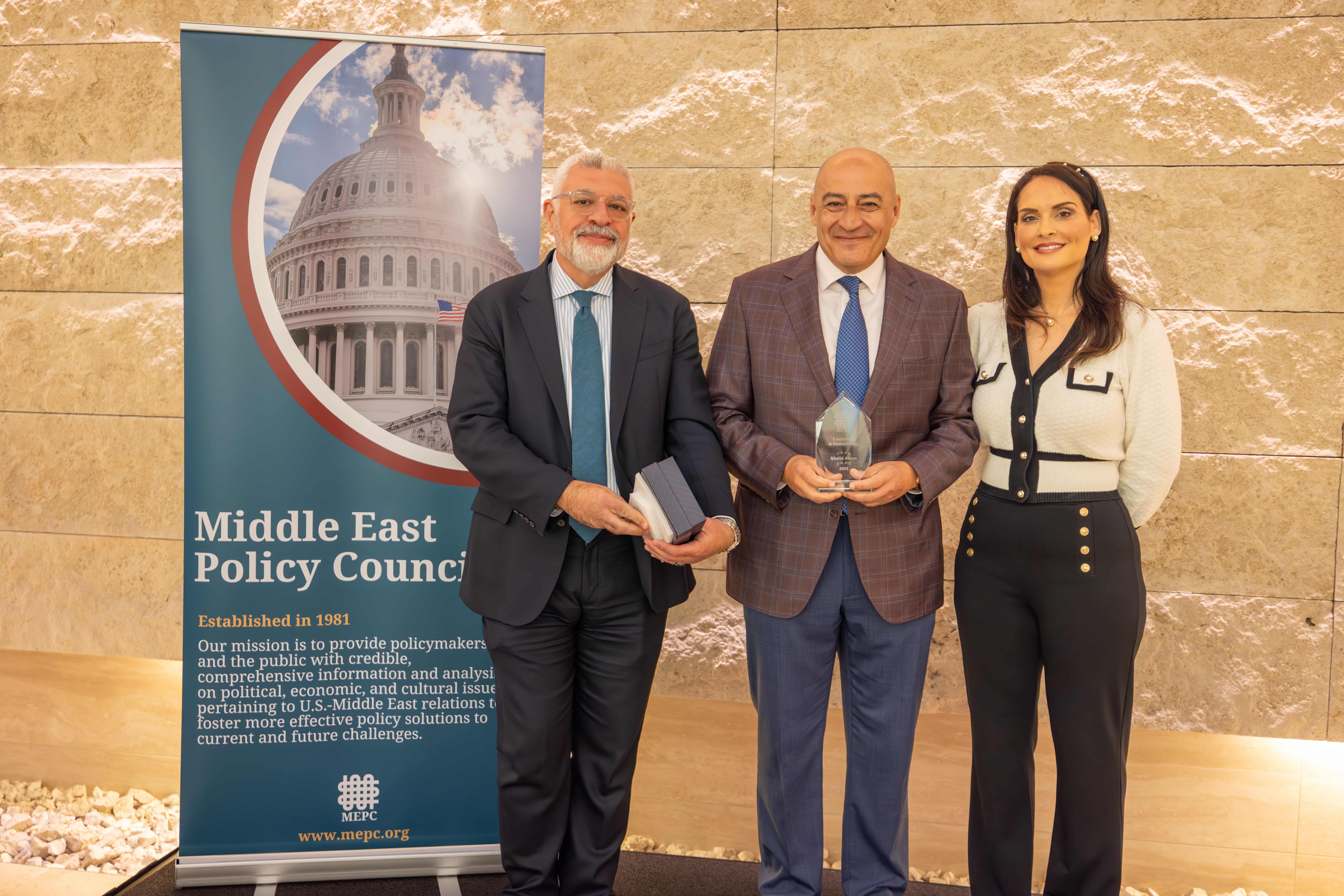 We were also honored to recognize Mr. Khalid A. Alwan with the Philanthropist of the Year Award for his decades-long philanthropic efforts, political activism, and contributions to the public understanding of political, economic, and cultural issues affecting U.S. interests in the Middle East and other corners of the globe. He has dedicated over three decades to the real estate industry, with a particular focus on affordable housing for low- and moderate-income families. Mr. Alwan is the official chair of MEPC’s prestigious Capitol Hill Conference series and a thought leader in policy discussions, where he provides fresh perspectives as a business authority.