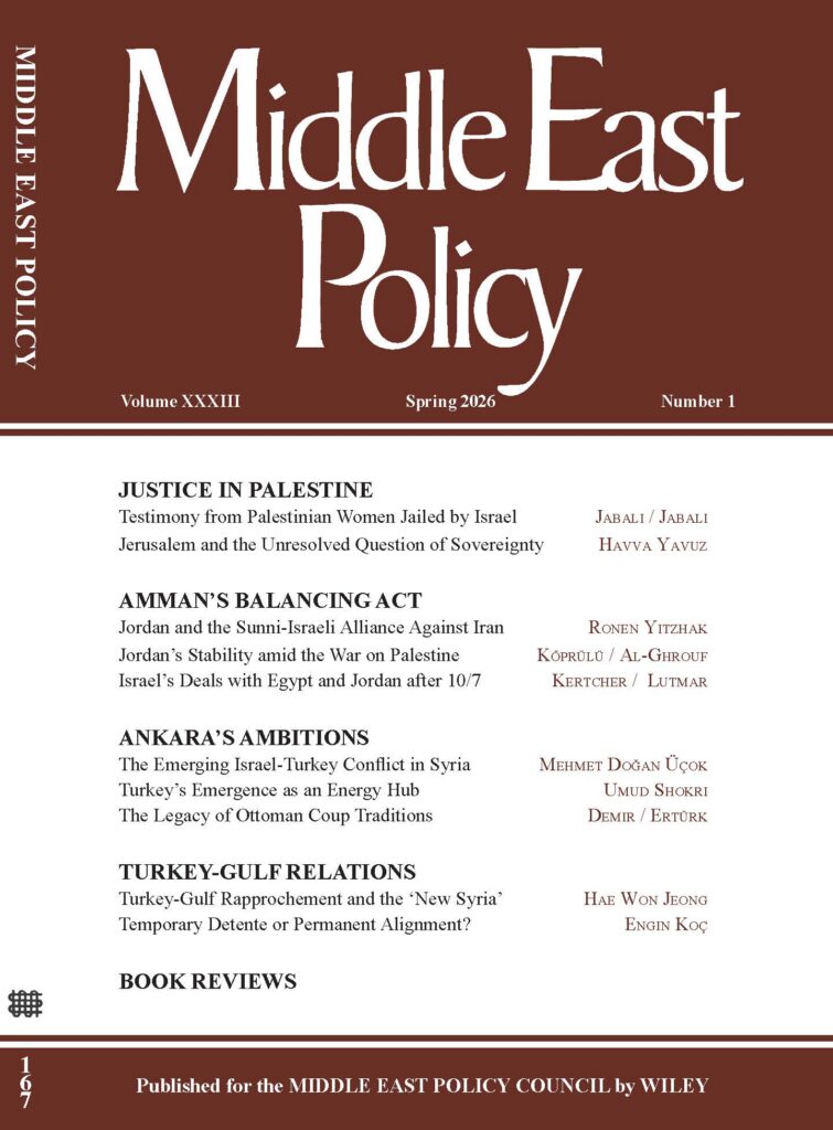 One of the most frequently cited journals on the Middle East in the field of international affairs, Middle East Policy has been engaging thoughtful minds for more than 40 years with high-quality, diverse analysis on the region.